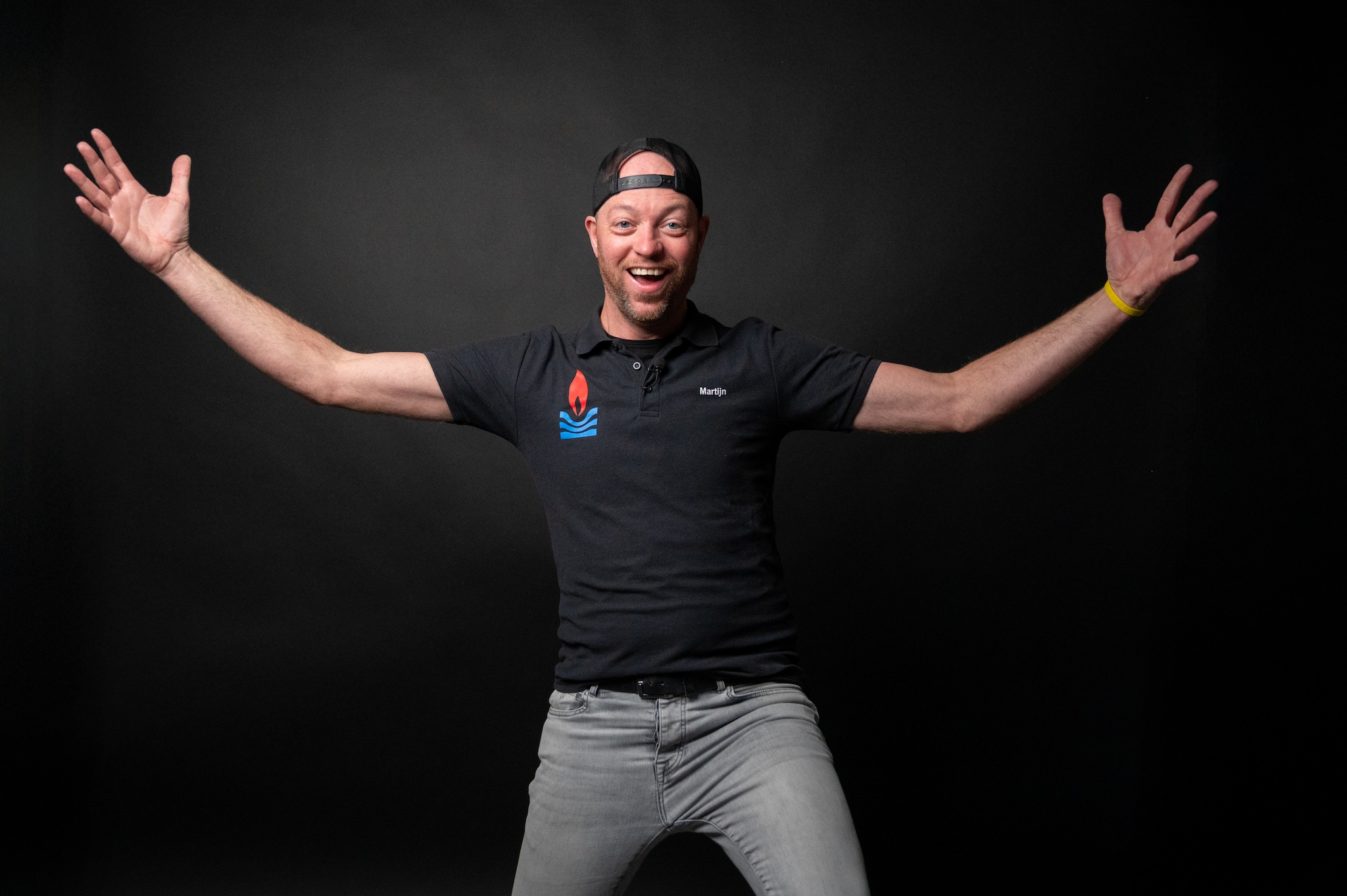 Martijn werkte jarenlang samen met zijn vader in het ouderlijk installatiebedrijf. Pa wilde niets weten van personeel. Gewoon met z’n tweeën op de bus. Pas nadat Martijn de zaak overnam, dertien jaar geleden, ging het roer om. Nu werkt er dertig man en meer worden dat er ook niet. „Nu zijn we een vriendenclub. Als we groeien, verdwijnt dat gevoel en dat wil ik niet. Da’s belangrijker dan groei.”